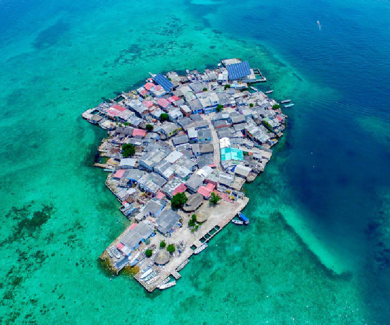 Santa Cruz del Islote në Arkipelagun e San Bernardo pranë brigjeve të Kolumbisë mund të ketë vetëm madhësinë e dy fushave të futbollit (dy hektarë), por ishulli artificial ka katër rrugë kryesore dhe 10 lagje. Pesëqind njerëz jetojnë në ishull në rreth 155 shtëpi. Me kaq shumë njerëz të paketuar në një hapësirë kaq të vogël, ai është ishulli më i populluar në botë, sipas The Guardian.